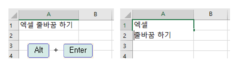엑셀사용시 2줄로 줄바꿈을 할때 사용하는 단축키 입니다.