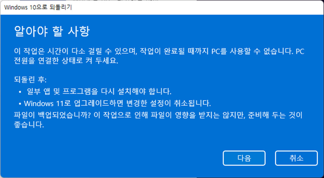 윈도우 11 다운그레이드 방법