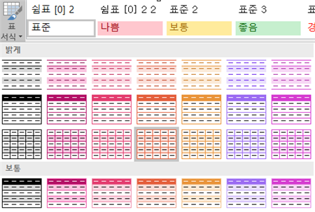 홈탭-[스타일] 그룹-표서식을 클릭한 후 스타일 목록에서 원하는 서식을 선택하면 됩니다.