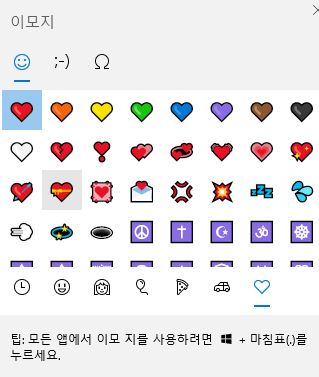 하트, 별 모양등 간단하게 입력할수 있는 방법입니다.